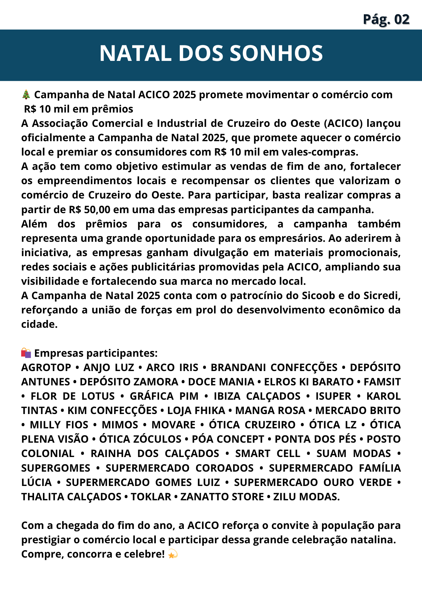 Agradecemos a todos os empresários, parceiros e colaboradores que caminham conosco. Juntos, seguimos construindo uma ACICO cada vez mais forte!