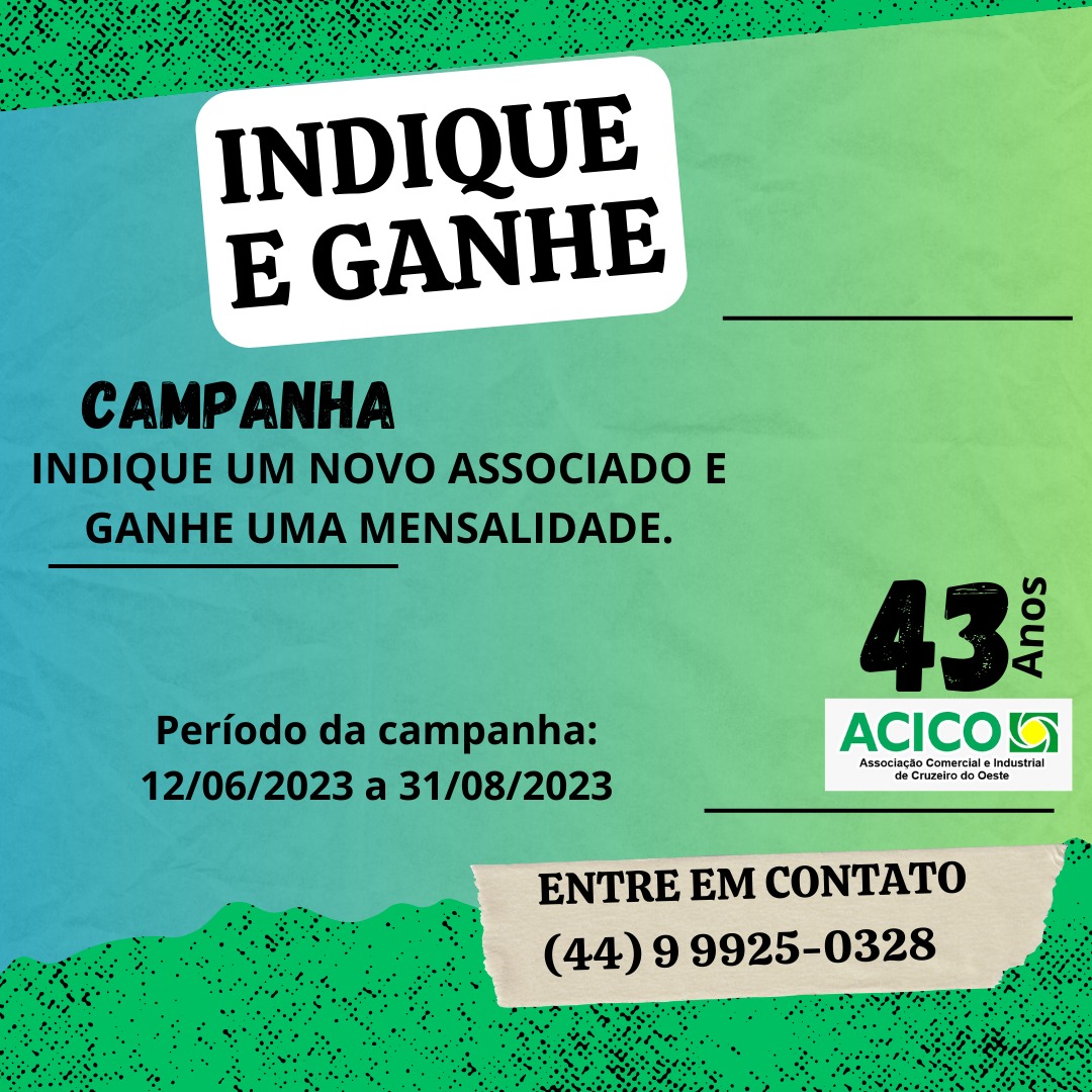 A Campanha Indique um Novo Associado e Ganhe uma Mensalidade tem como objetivo aumentar o número de Associados Efetivos da ACICO, de forma a promover o associativismo e a representatividade da classe empresarial.