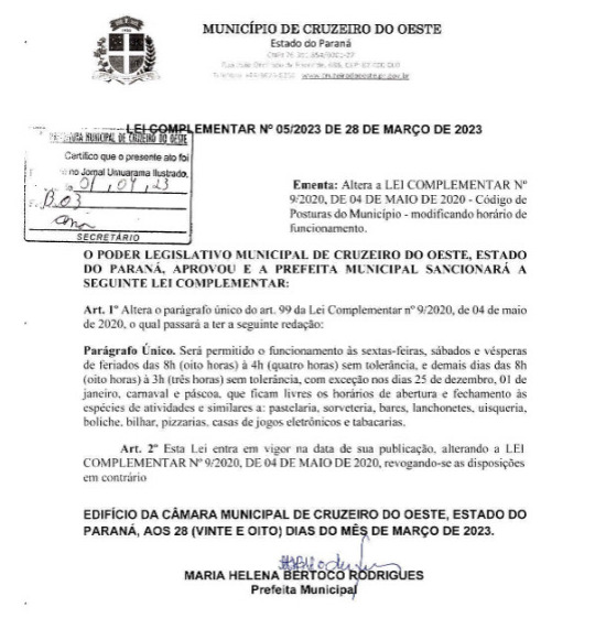 Alterou o funcionamento às sextas-feiras, sábados e vésperas de feriados das 8h(oito horas) à 4h(quatro horas) sem tolerância, e demais dias das 8h(oito horas) à 3h(três horas) sem tolerância.