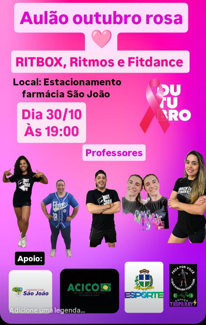 A ACICO e a Tropa ray convidam todos os associados e a comunidade para participar do Aulão do Outubro Rosa, um momento de movimento, energia e conscientização sobre a importância da prevenção ao câncer de mama. 💪💖