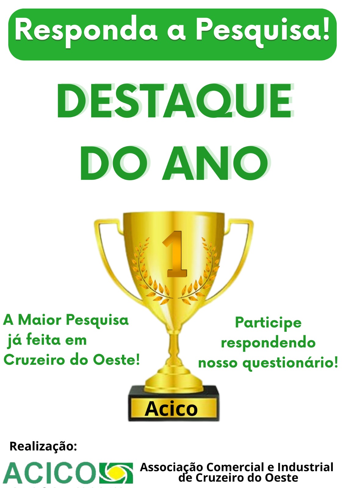A Associação Comercial e Industrial de Cruzeiro do Oeste (ACICO) realiza o 1º Prêmio ACICO Destaque do Ano de Cruzeiro do Oeste !